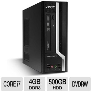 Veriton X4618G-Ui7260W Compact Desktop - Black, Intel Core i7-2600 Processor (8MB Intel Smart Cache, 3.40GHz), 4GB (2/2/0/0) DDR3 SDRAM, 500GB SATA hard drive, 7200RPM;Super Multi drive, Integrated Intel HD Graphics, Gigabit LAN, Windows 7 Professional (32-bit/64-bit dual hotload) - User must make a one-time choice of hotload, Microsoft Office Starter 2010